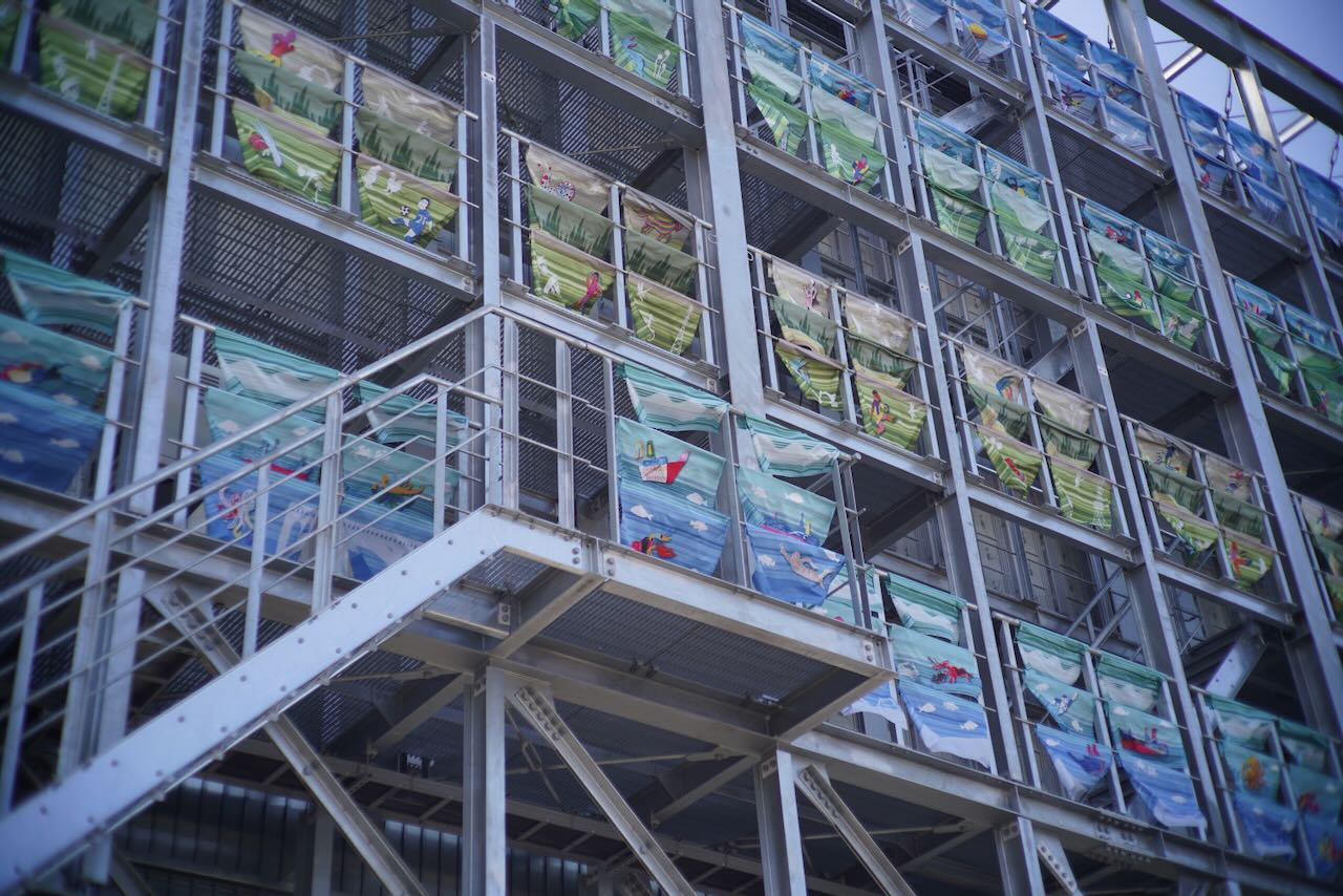 それぞれの想いが詰まった”里山”無機質なビジョン裏を彩ります。