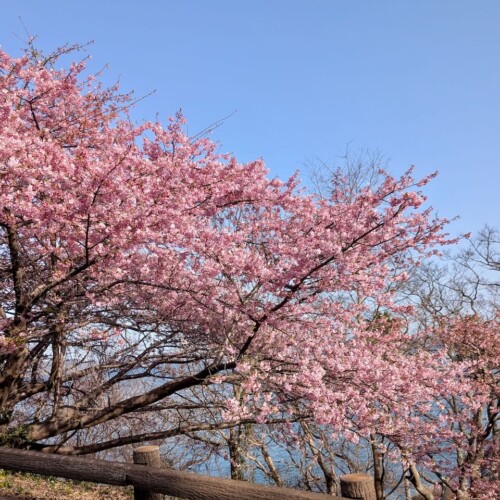 大角海浜公園の河津桜が見ごろに!暖かい風と穏やかな海と、春の訪れが感じられる色彩を。【2月...