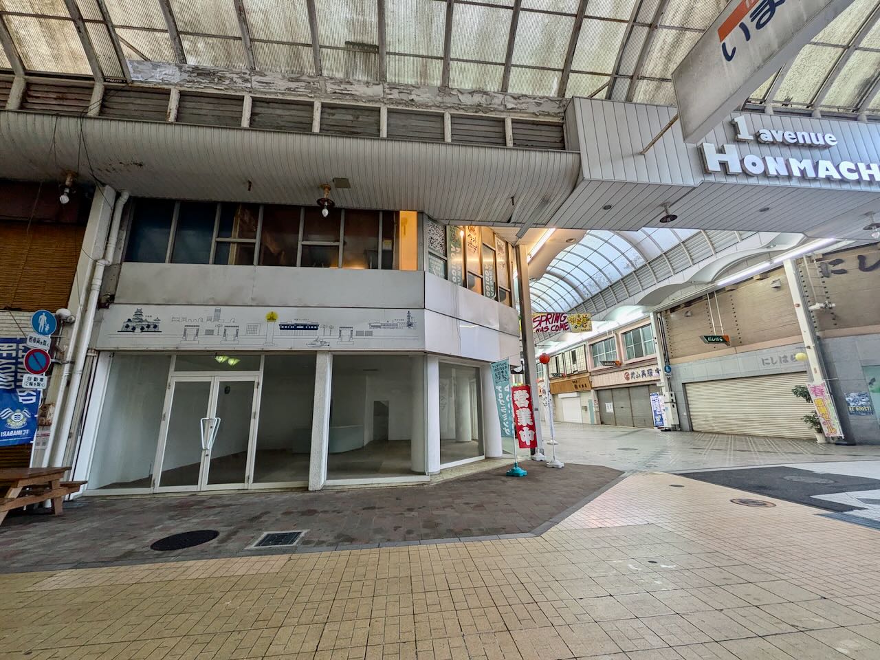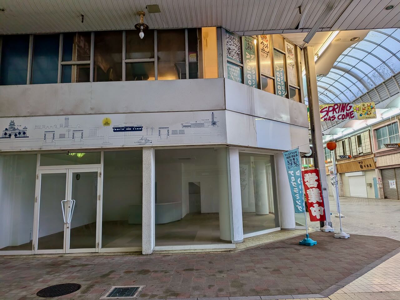 シャッターが開き、そして閉まることが多い商店街ですが、この場所はまた夏ごろには新たな看板が立つ予定になっています。