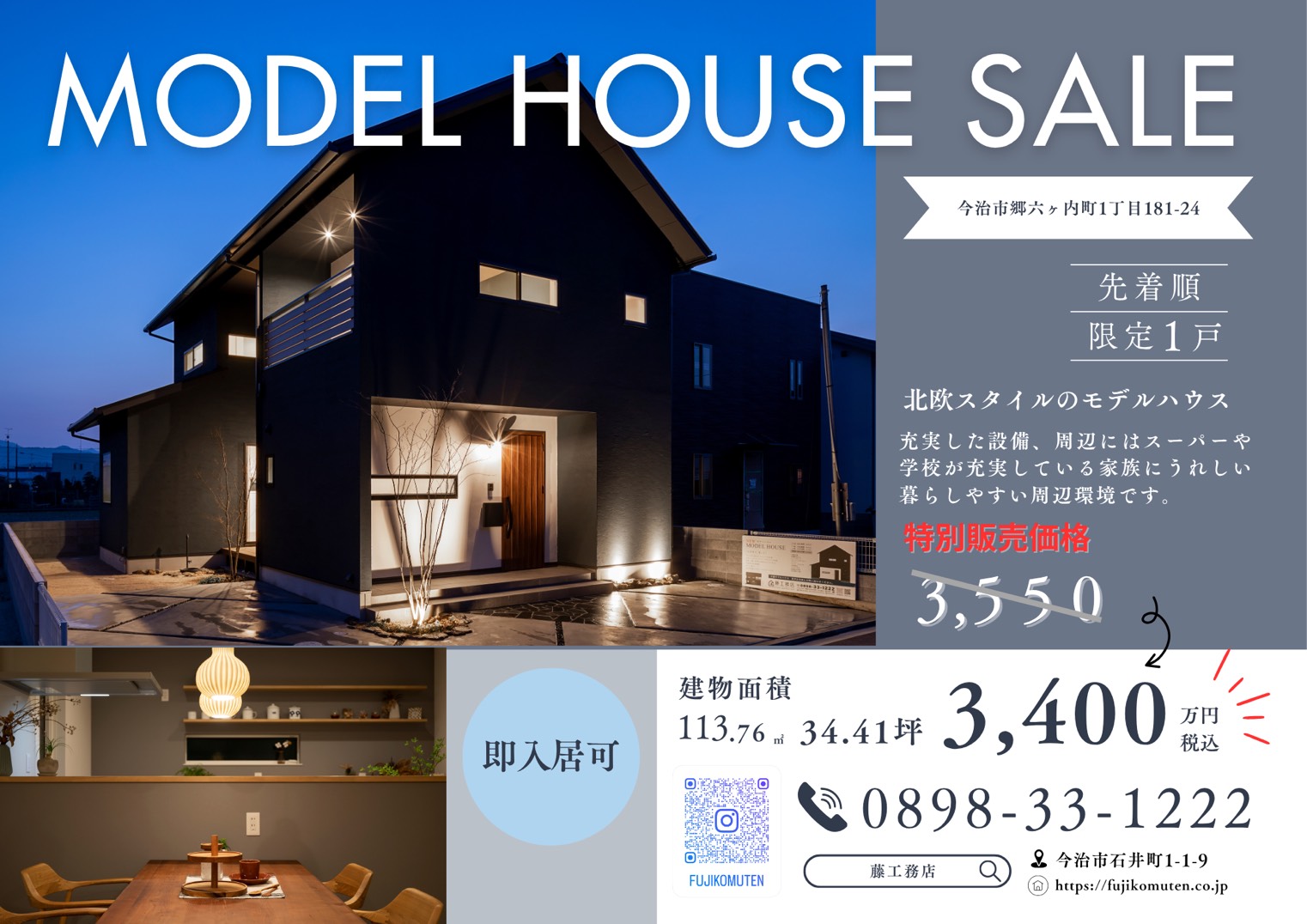 モデルハウスとして建てられたこの物件が、今回3,400万円の価格で販売することとなりました。
