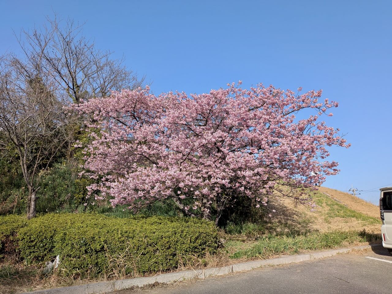 昨年は3月10日前後に満開を迎えていた大角海浜公園の河津桜。