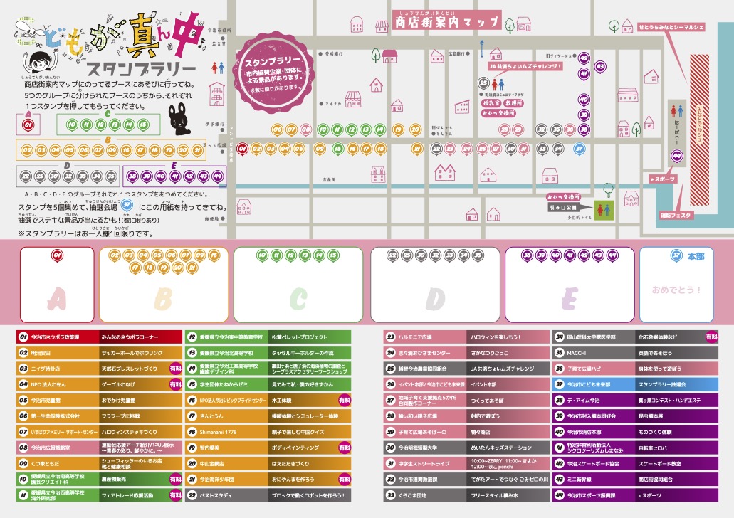 商店街のあちこちで、合計44ヶ所で子ども向けのワークショップなどが行われます。