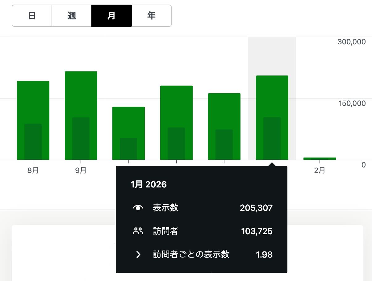 それでは早速2026年1月のアクセスの数字からいってみしょう!