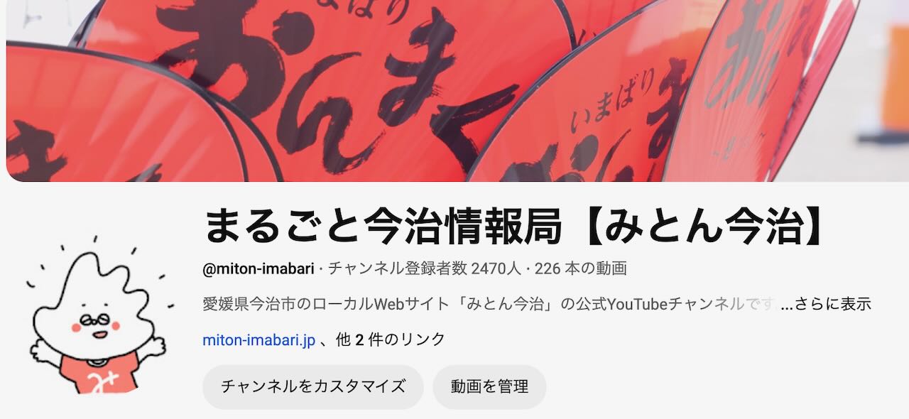 そして、みとん今治のYouTubeチャンネル。まるごと今治情報局