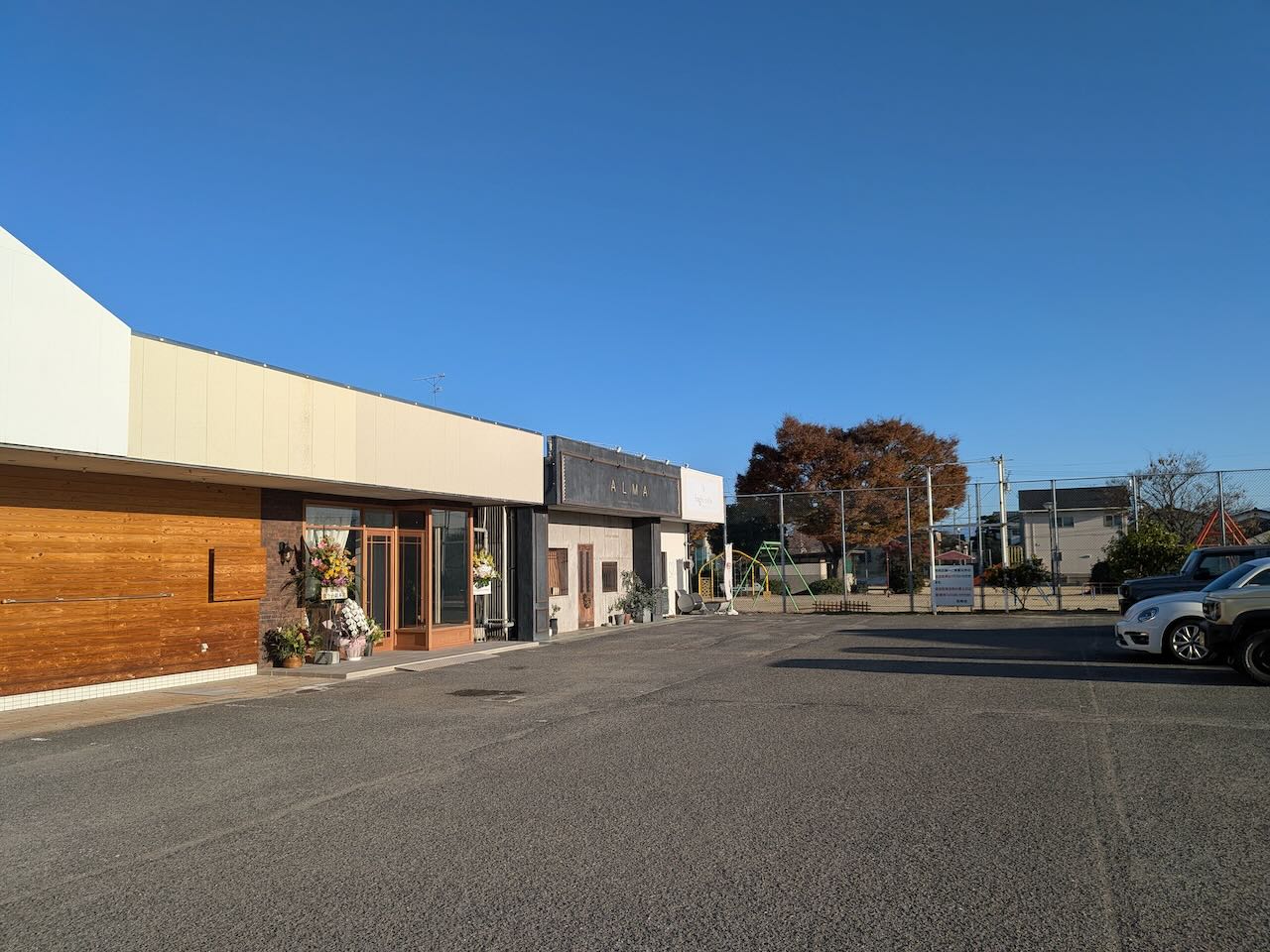 奥からカフェの「hachi cafe」さん、ケーキ屋さんの「ALMA」さんという流れのお隣。