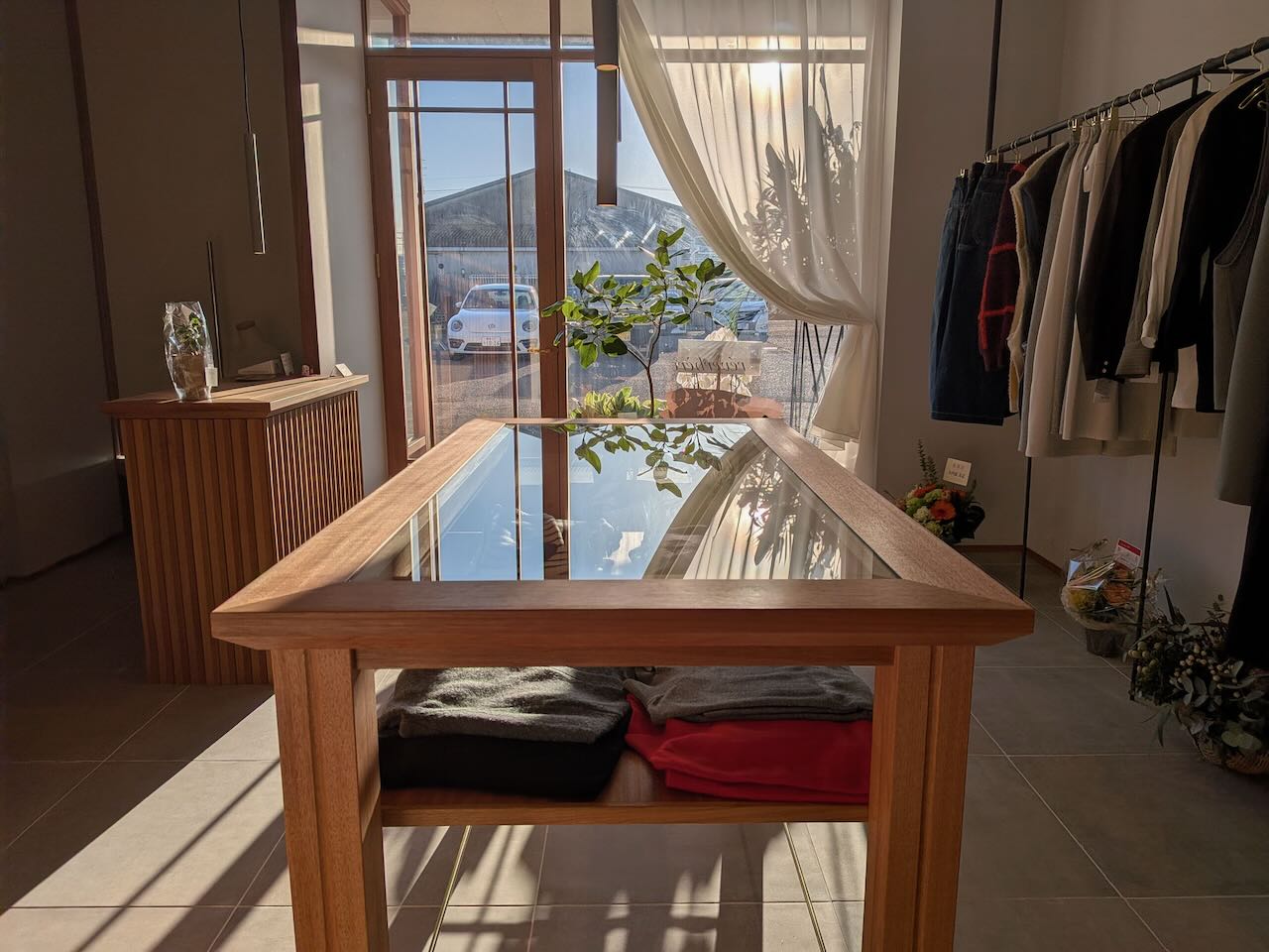 ハンガーラックに、中央にテーブル。