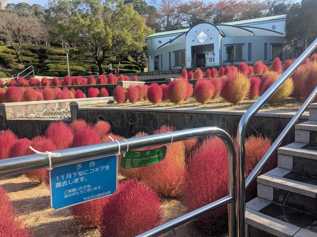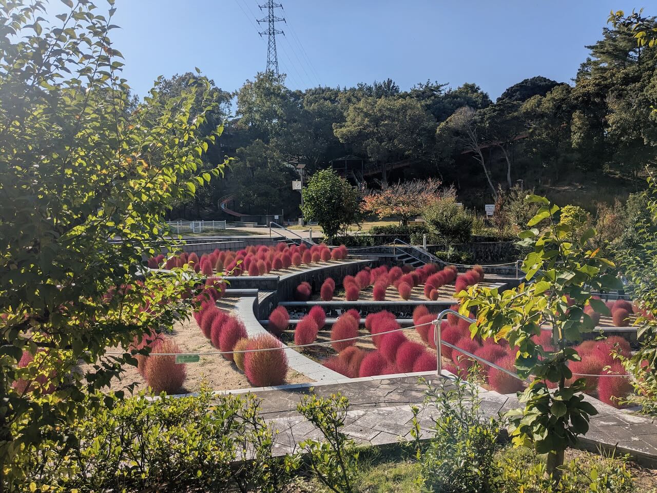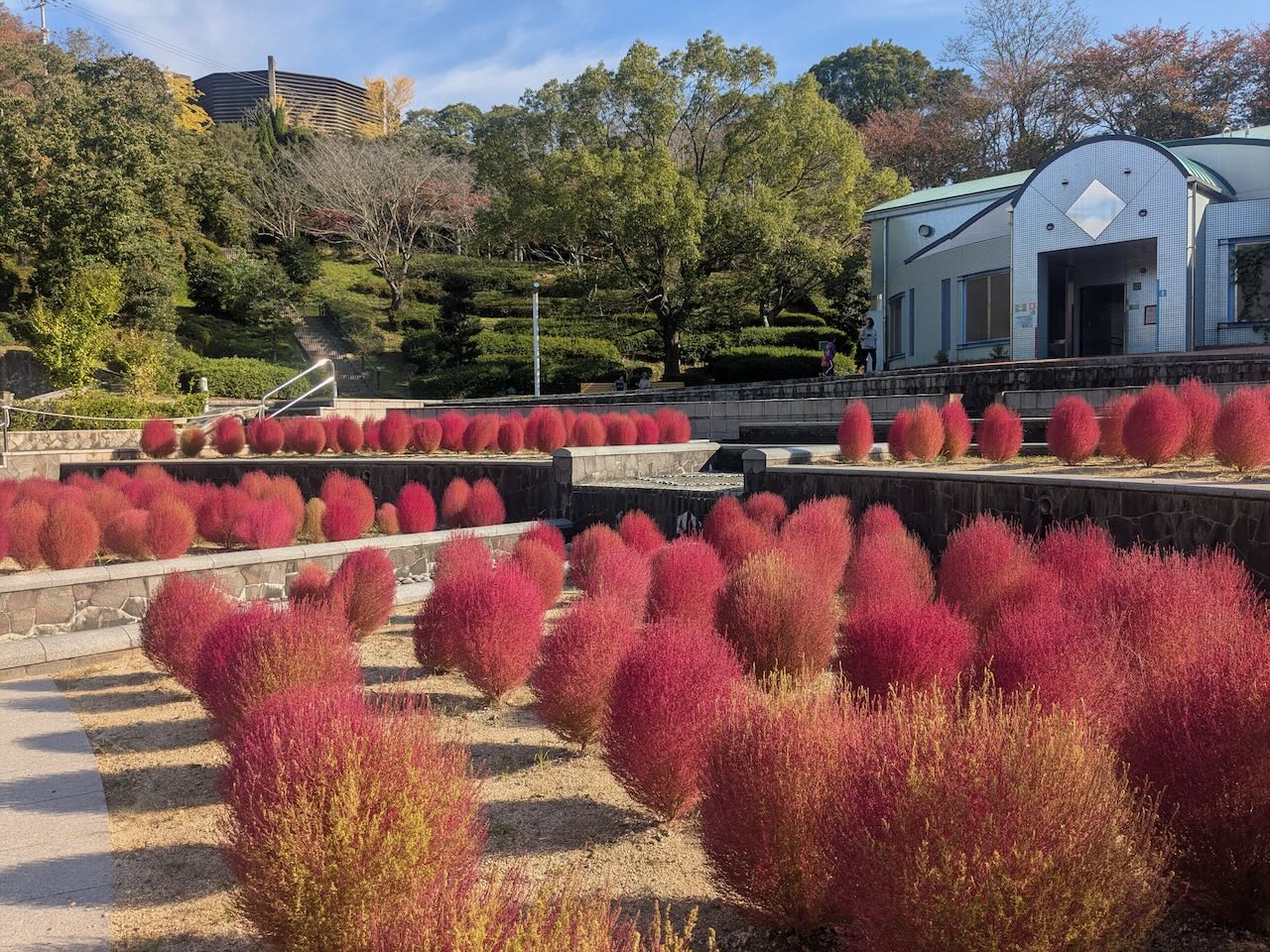 市民の森(市制50年記念公園)で紅葉したコキアが見頃に!季節の変化を色で楽しめる!