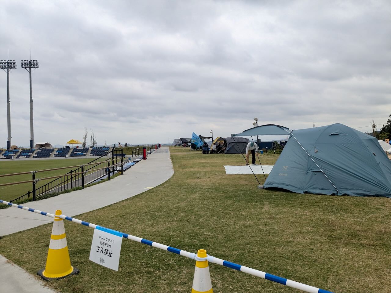 こちらの芝生では、この日は観客席の後ろではなくキャンプサイトに。