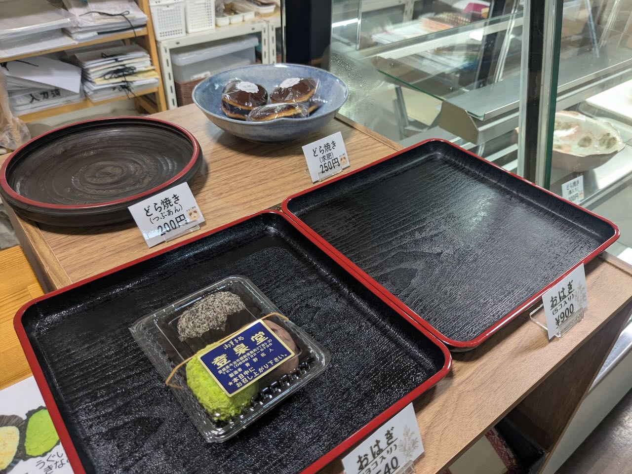 この日はほとんど売れ切れていましたが、おはぎにどら焼きに。