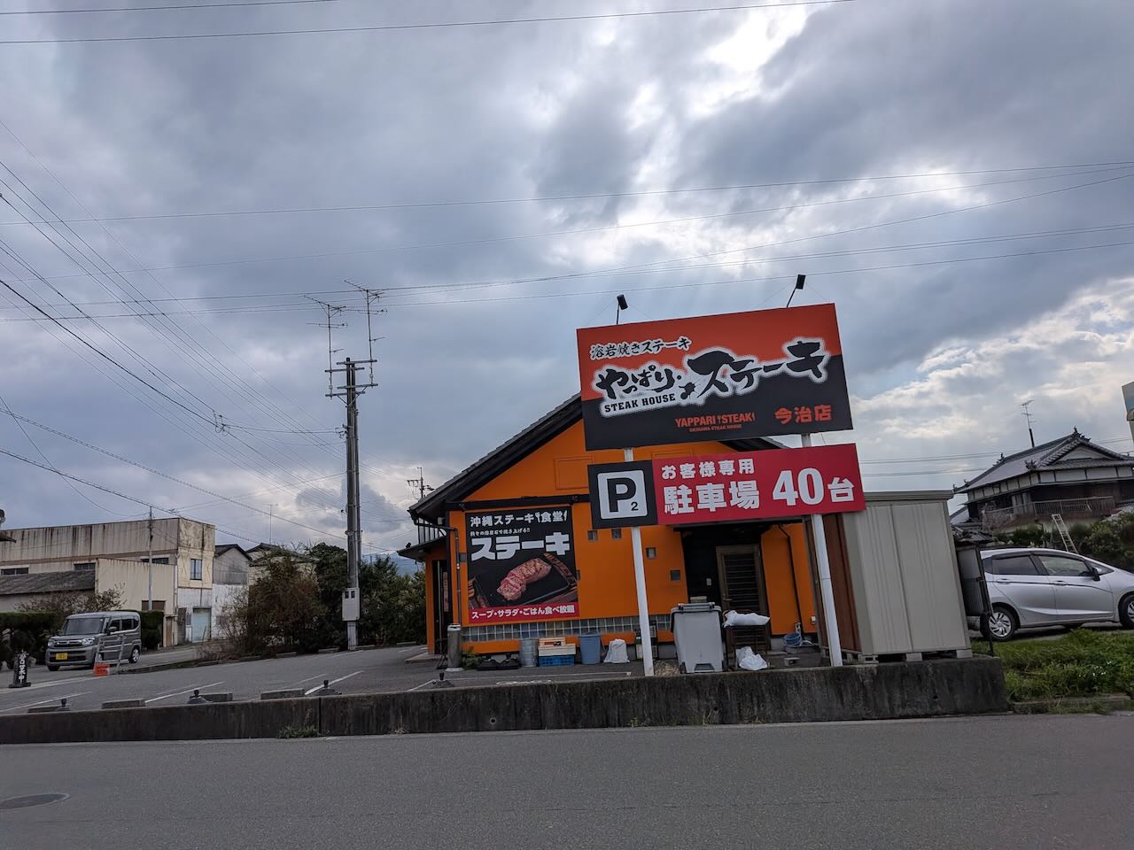今治でステーキといえばの場所に定着しつつある「やっぱりステーキ 今治店」。