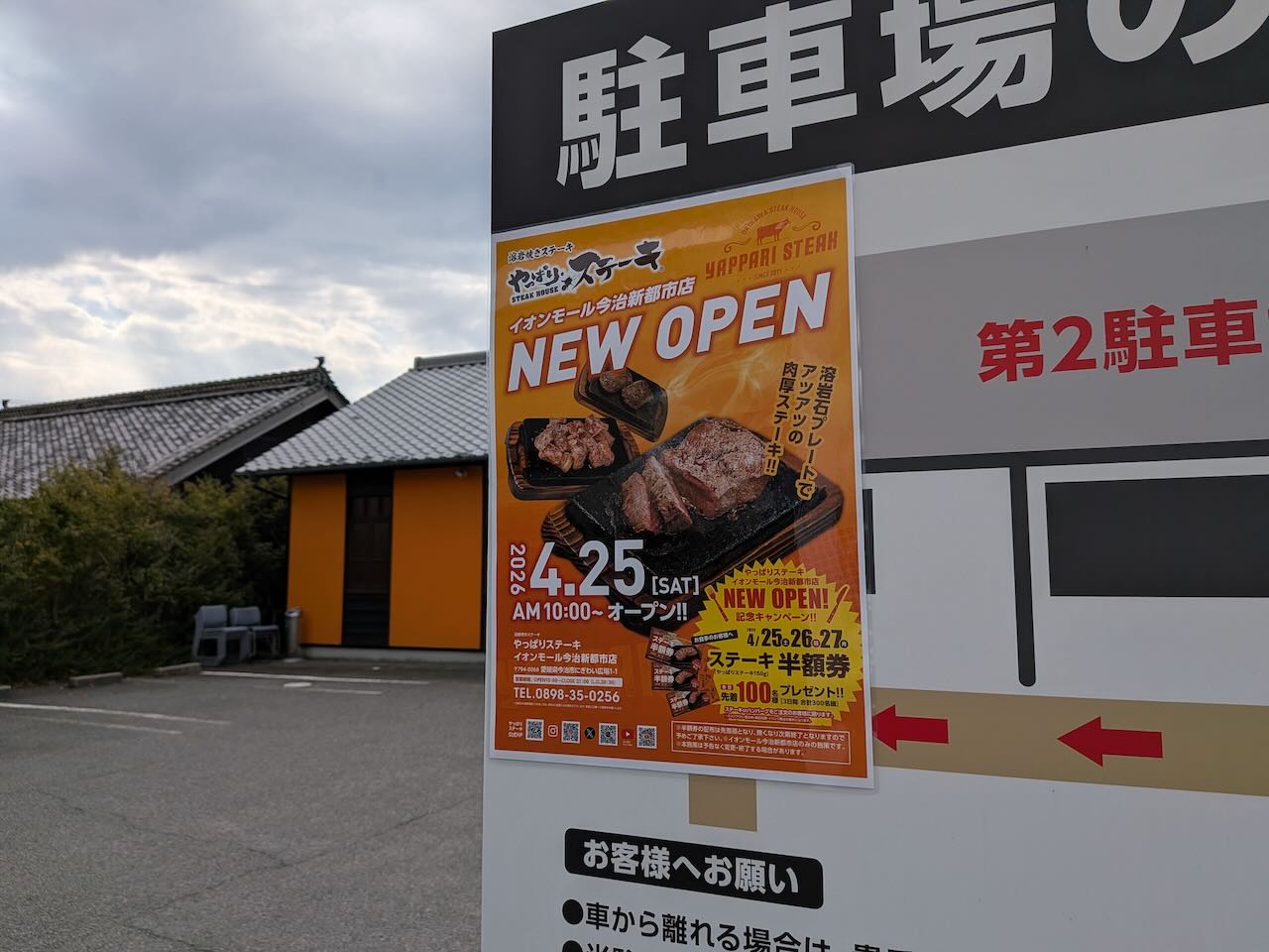 現在の「やっぱりステーキ 今治店」は3月31日で閉店!4月25日からイオンモール今治新都市に移転オープンへ!